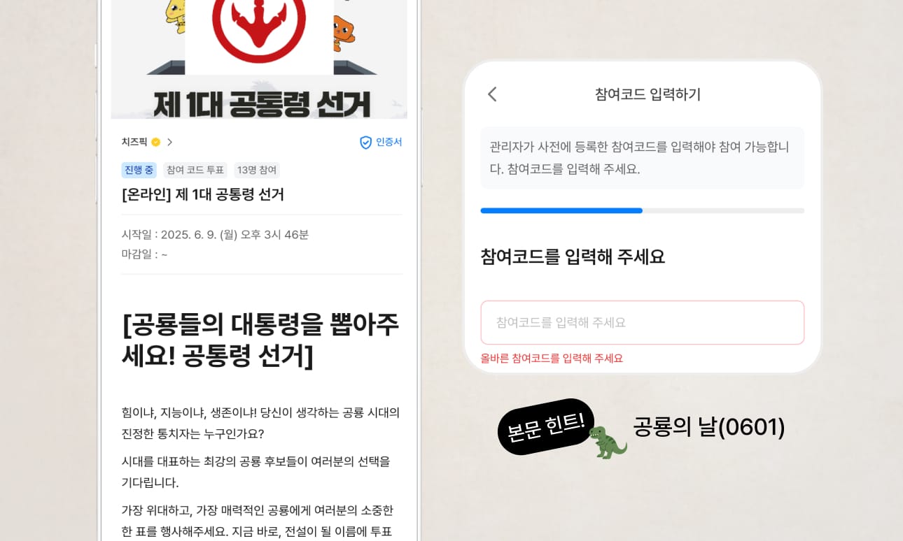 그래서 치즈버튼이 준비했어요. 그날의 ‘공통령 선거’, 이번엔 온라인에서 다시 즐겨보세요!