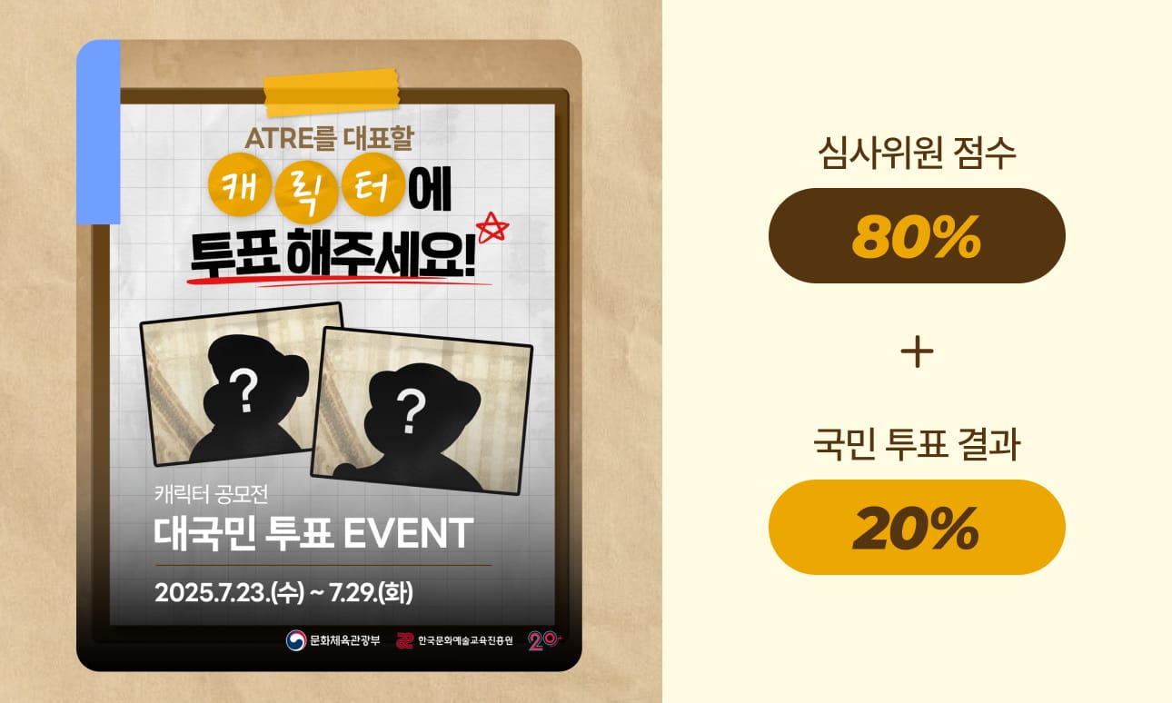 올해 한국문화예술교육진흥원은 창립 20주년을 맞아 기관을 더 친근하게 알릴 수 있는 ‘대표 캐릭터’를 새롭게 만들기로 했어요. 그리고 그 주인공을 국민들이 직접 뽑을 수 있는 특별한 캐릭터 공모전이 열렸어요!