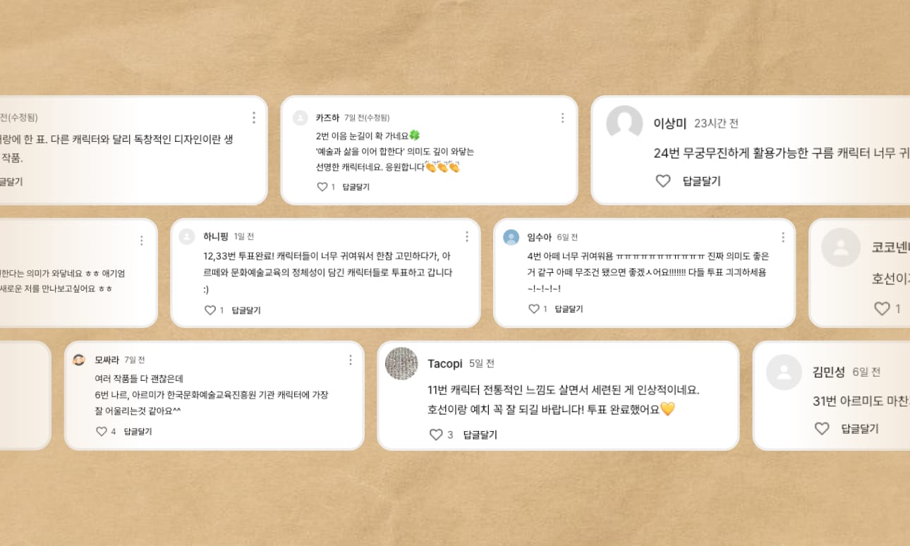 이렇게 왜 이 캐릭터를 뽑았는지 의미있는 이유가 담긴 응원이 쏟아지자, 다른 사람들도 그 의견에 공감하며 하나둘씩 투표에 참여했어요. 공감이 공감을 부르고, 응원이 응원을 더하면서 투표는 빠르게 확산됐죠.