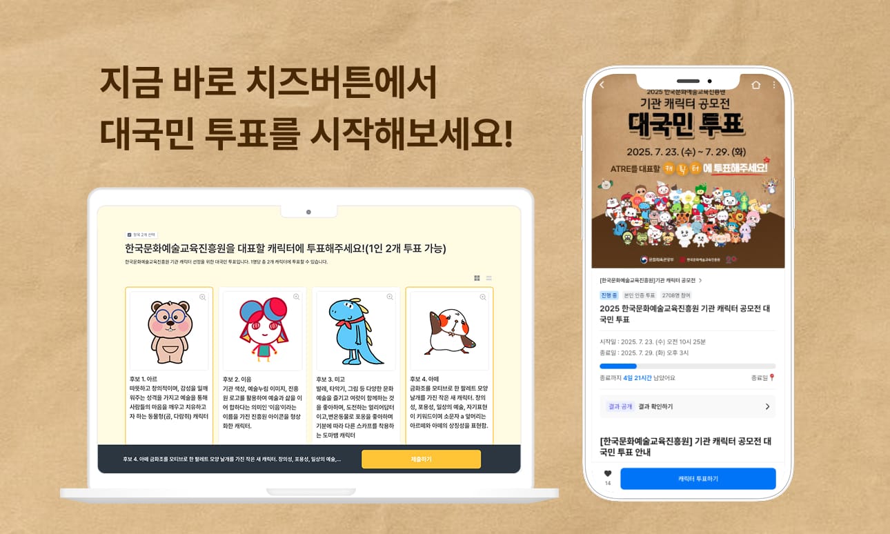 지금 바로 치즈버튼에서 대국민 투표를 시작해보세요!