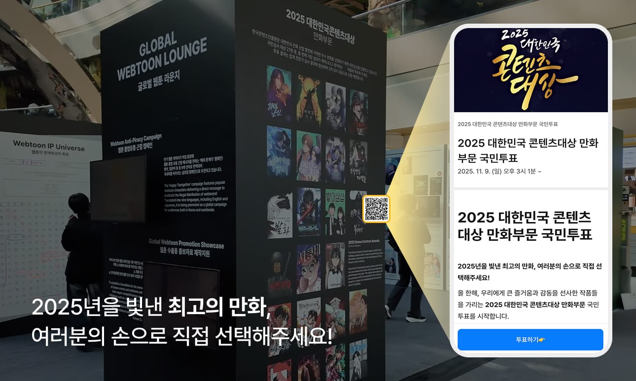 K-콘텐츠의 글로벌 위상이 높아지면서, 특히 K-웹툰은 이제 전 세계가 주목하는 문화 현상으로 자리 잡았습니다. 이렇게 뜨거운 관심 속에서 열린 '2025 대한민국 콘텐츠대상 만화부문 국민투표'
