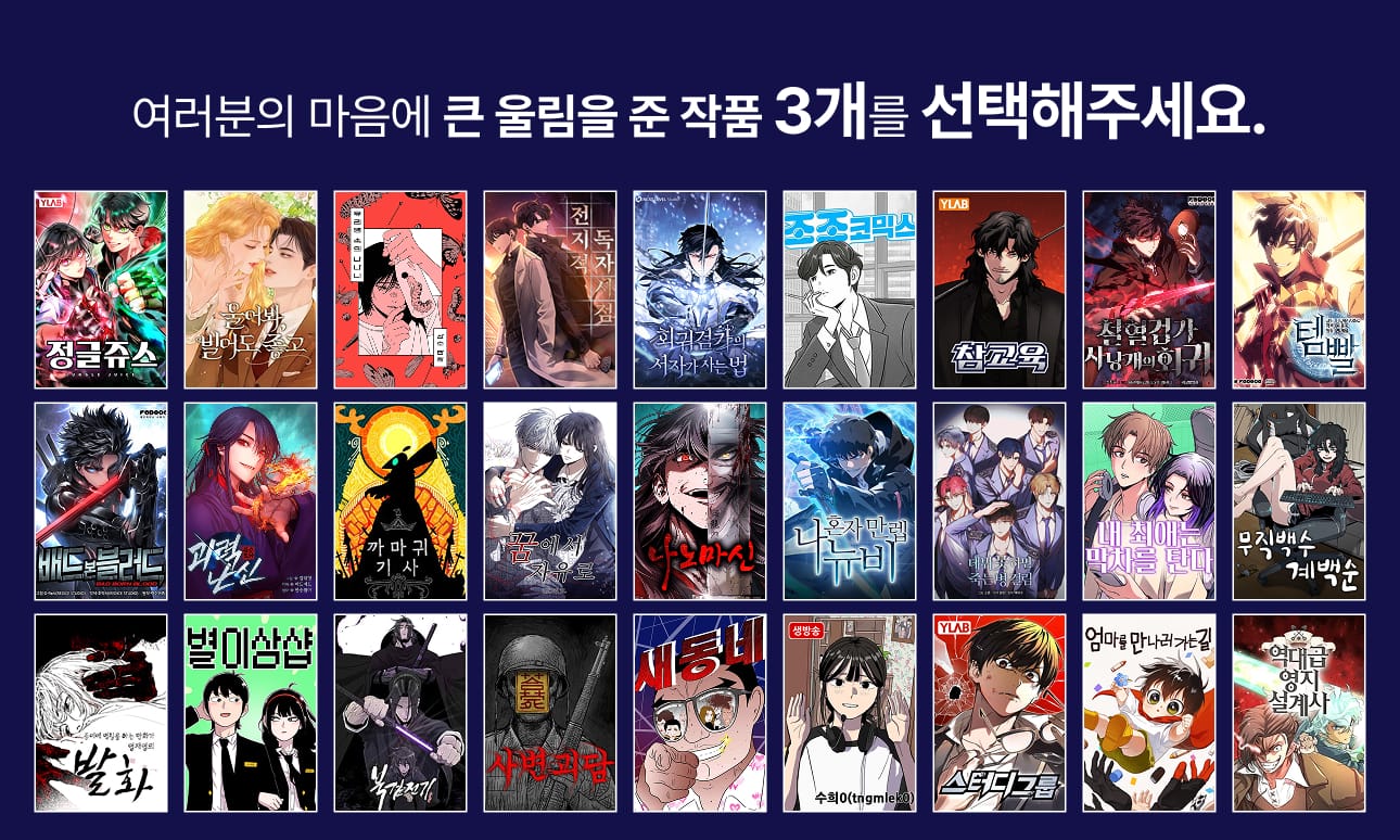 그중에서도 만화부문 국민투표는 한 해 동안 독자에게 큰 사랑을 받은 작품들을 팬 스스로 선정하는 특별한 절차였어요. 최종 후보작 선정에 반영하기 위해 국민 투표가 진행되었답니다.