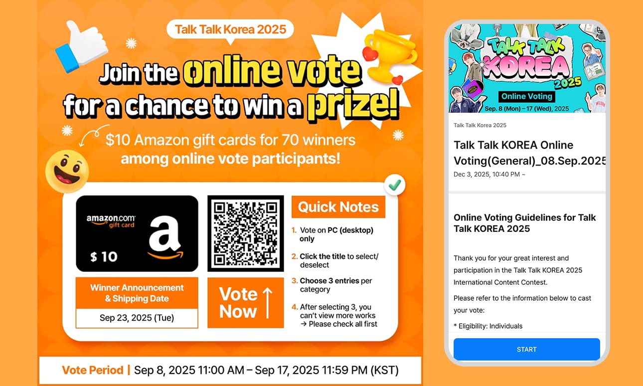 수많은 출품작은 예비 심사 및 1·2차 전문가 심사를 거쳤으며, 최종적으로 공정성과 대중성을 확보하기 위한 3차 온라인 투표를 진행하게 되었어요. 이 최종 관문은 부문별 1등 수상자에게 주어지는 8박 9일간의 한국문화 체험이라는 파격적인 혜택과 맞물려 전 세계 K-팬들의 뜨거운 참여 경쟁을 유도했어요.😎
