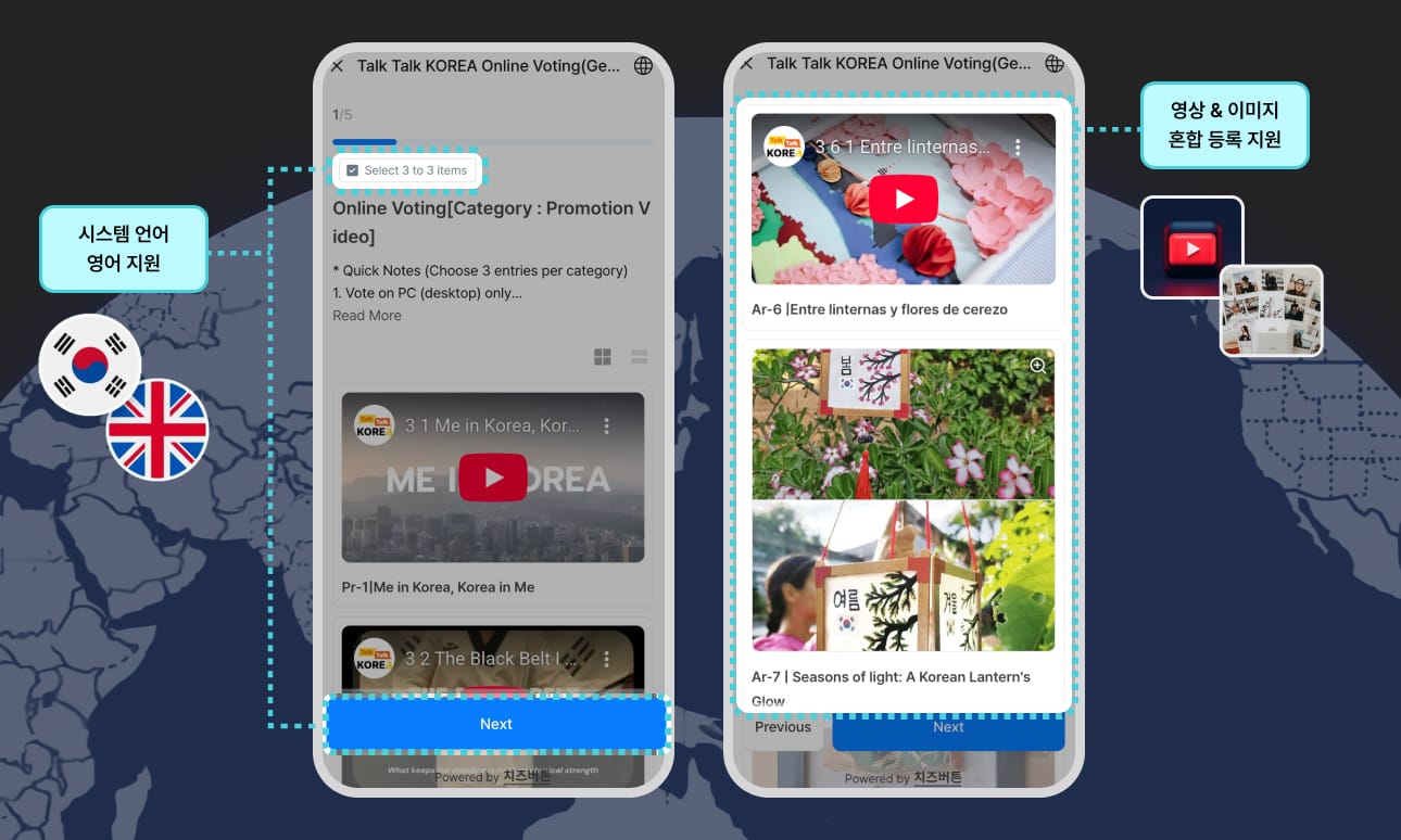 - 글로벌 접근성 및 영어 지원: 전 세계 외국인 참가자를 위해 세계 공용어 영어를 완벽하게 지원하여 누구나 쉽게 투표에 참여할 수 있었어요.