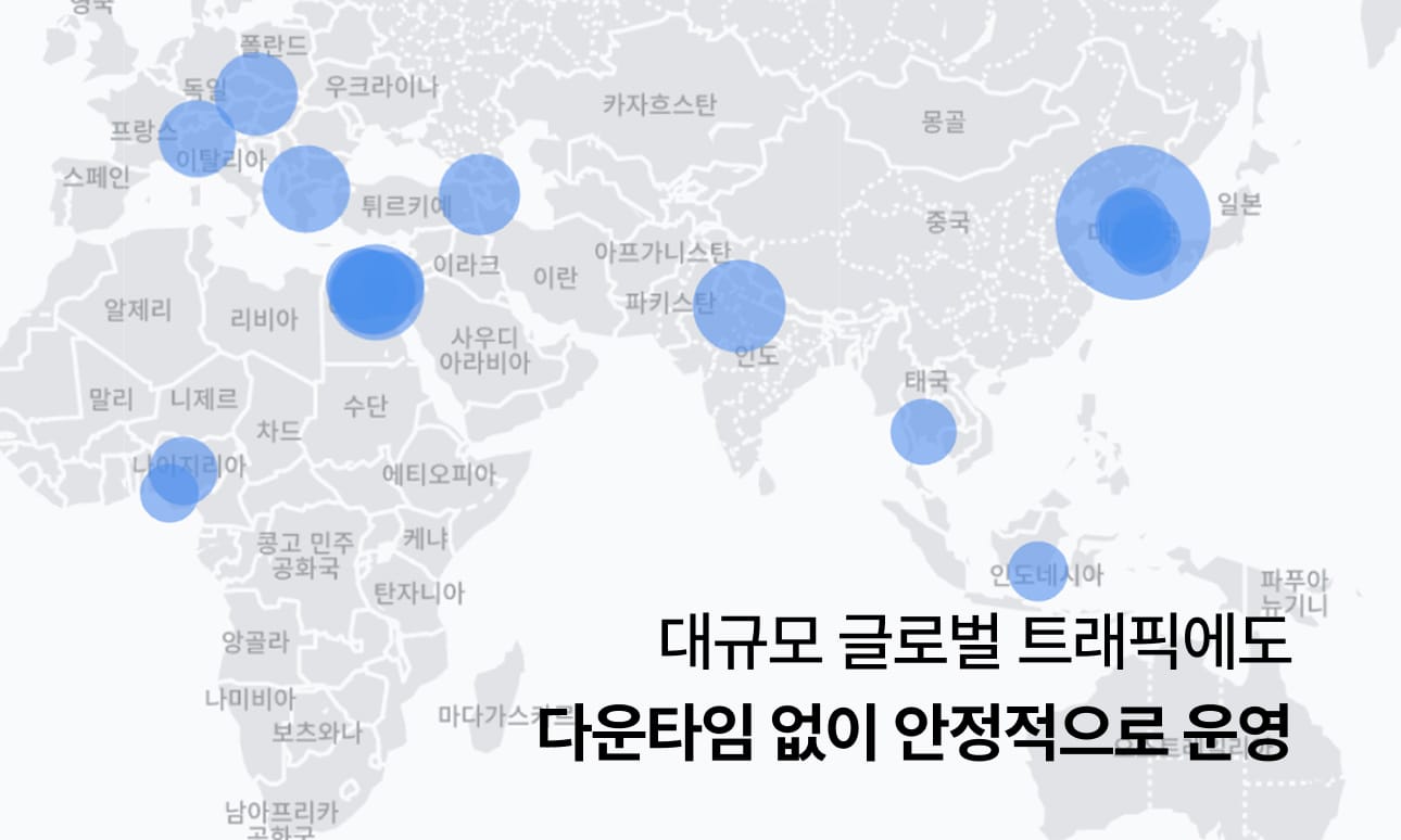 - 안정적인 대규모 트래픽 처리: 대규모 글로벌 트래픽에도 다운타임 없이 안정적으로 서비스가 운영되었어요.