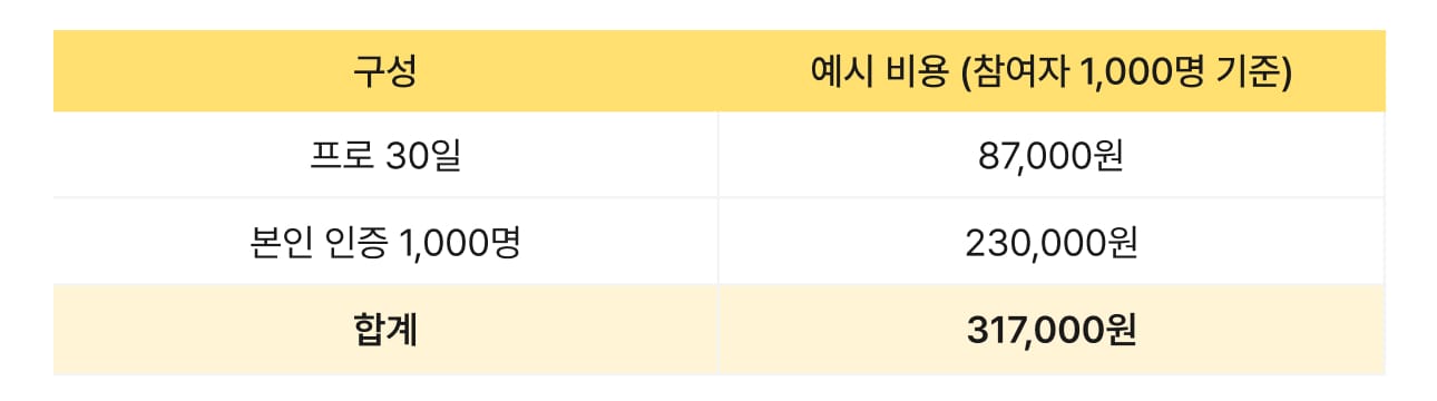 추천: 프로 플랜 + 참여자 인증(본인인증)